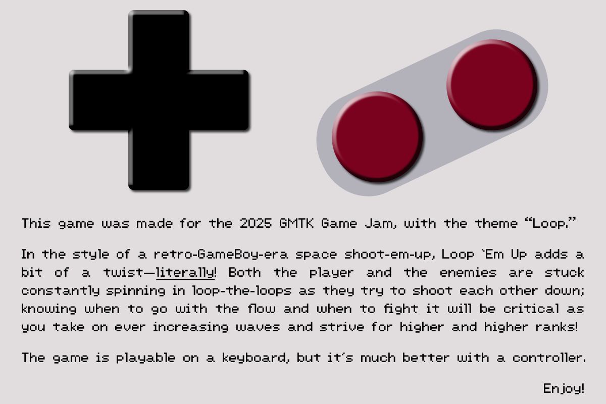 Tags | 2D, Endless, Game Boy, Game Maker's Toolkit Jam, Godot, Retro, Shoot 'Em Up, Singleplayer, Space |